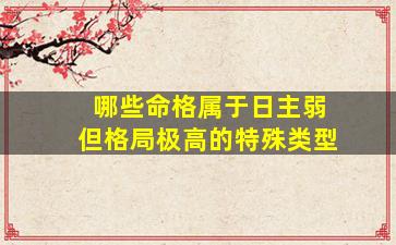 在八字命理学中,日主弱但格局极高的特殊类型通常指那些虽然日主(出生日的天干)能量不足,但整体格局组合精妙,能够通过其他方式弥补或转化弱势,从而形成贵气或成就的命局。这类命格往往具有以下特征: