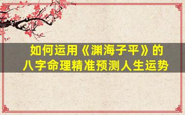 运用《渊海子平》的八字命理精准预测人生运势,需要系统掌握其理论框架并结合实践验证。以下是具体步骤和方法: