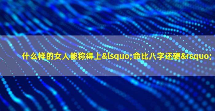 “命比八字还硬”是一个民间俗语,常用来形容一个人(无论男女)生命力极其顽强,能够克服常人难以想象的困难或灾厄,甚至突破命运(传统命理中“八字”所预示的局限)的束缚。当用来形容女性时,通常带有以下特质: