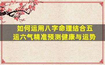 运用八字命理结合五运六气进行健康与运势预测,是一种融合个人命局与时空能量变化的综合分析方法。以下为具体步骤与逻辑框架: