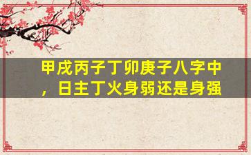 在分析八字“甲戌 丙子 丁卯 庚子”中日主丁火的强弱时,需结合月令、天干地支的生克关系及五行力量综合判断。以下是具体分析: