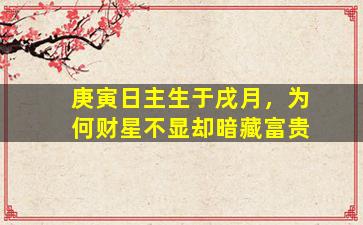 在八字命理中,"财星不显却暗藏富贵"的现象可以从以下几个角度解析: