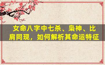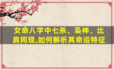 在八字命理中,七杀、枭神(偏印)、比肩同时出现于女命,确实会形成较为复杂的命局特征,需结合十神特性和五行生克综合分析。以下是具体解析思路:
