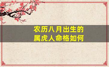 在中国传统命理学中,个人的命格由出生年月日时(八字)综合推算,仅凭农历月份和生肖无法精确判断,但可以结合生肖与月份的特点进行一般性分析。以下是关于“农历八月(酉月)出生的属虎人”的命理特点,供参考: