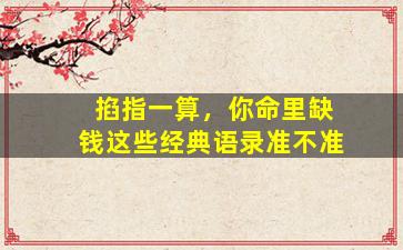 “掐指一算,你命里缺钱”这类经典语录,本质上是一种带有幽默和调侃性质的网络流行语或江湖话术,其准确性更多取决于你如何理解和使用它。以下是几点分析:
