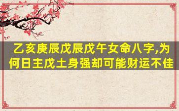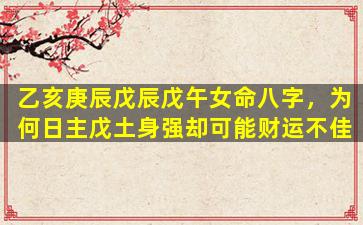 八字排盘分析:乙亥 庚辰 戊辰 戊午(女命)