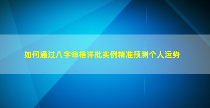 通过八字命格详批预测个人运势是中国传统命理学的核心应用之一,其本质是以出生年月日时的天干地支(八字)为基础,结合五行生克、大运流年等规则进行综合分析。以下以实例解析具体步骤,帮助理解如何实现精准预测: