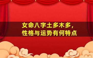 在八字命理中,五行土多木多的女命,其性格与运势特点可从五行生克、十神配置及整体格局综合分析。以下是主要特点: