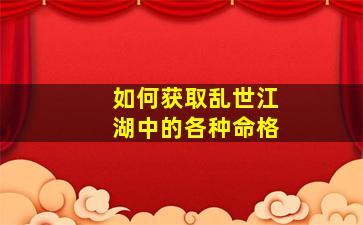 在《乱世江湖》这类武侠题材的游戏中,命格通常代表角色的先天特质、命运走向或特殊能力,获取方式多样且常与游戏玩法深度结合。以下是常见的获取途径及策略: