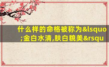 “金白水清”是传统命理学中一种较为特殊的格局,主要与五行(金、水)的纯度和配合有关,常被认为主外貌清秀、肤色白皙、气质出众。这一命格的判定需结合八字中天干地支的五行属性和生克关系,以下为具体解析: