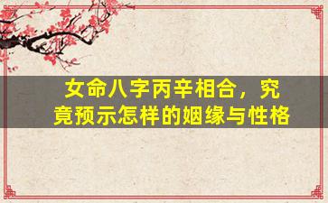 在八字命理中,“丙辛相合”是天干五合之一,属于“威制之合”(丙为阳火,辛为阴金,火克金而相合),这一组合对女命的姻缘和性格确实存在一定影响,但需结合八字整体格局、地支藏干、十神配置等综合分析。以下是常见的解读方向:
