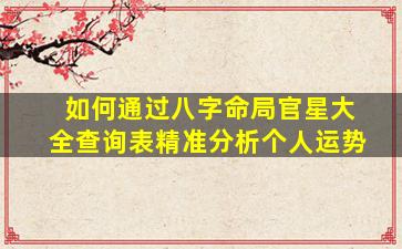 通过八字命局的“官星”分析个人运势是传统命理学的核心方法之一,官星代表事业、地位、权力、法律等,对个人运势影响深远。以下是系统化的分析步骤和技巧,结合“官星大全查询表”精准解读的方法: