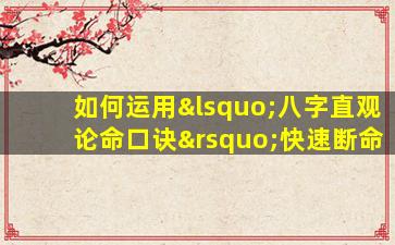 运用“八字直观论命口诀”快速断命的核心在于抓住关键要素,结合口诀的简化逻辑进行综合分析。以下是具体步骤和方法: