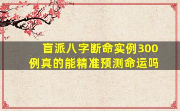 关于“盲派八字断命实例300例”是否能精准预测命运的问题,需要从命理学本身的特点、盲派八字的传承方式以及科学角度综合看待。以下是一些关键分析: