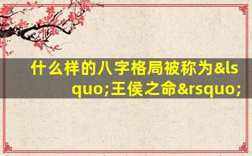 在中国传统命理学中,“王侯之命”的八字格局通常指具有极强贵气、权势和社会地位的命局组合。这类格局往往具备以下特征,但需注意,实际分析需结合具体八字、大运和时代背景综合判断(现代社会中更多体现为事业巅峰或非凡成就):