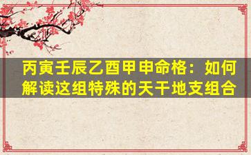 要解读“丙寅 壬辰 乙酉 甲申”这组四柱命格,需从五行生克、十神关系、地支藏干及整体格局入手逐一分析。以下是详细解读: