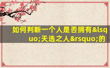 在中国传统命理学中,"天选之人"并非严格的专业术语,而是民间对特殊命格的一种夸张表述,通常指八字中具有非凡格局、五行能量纯粹或特殊星宿组合的人。若想从专业角度分析一个人的八字是否具备超乎常人的潜质,可参考以下判断思路: