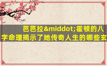 芭芭拉·霍顿(Barbara Hutton,1912—1978)是美国著名女继承人,因其巨额财富、七次婚姻以及戏剧性的人生经历被称为"亿万宝贝"。她的命运起伏与八字命理中的五行生克、格局组合有一定呼应,以下从命理学角度试析其人生玄机: