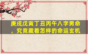 您提供的八字为:庚戌 戊寅 丁丑 丙午(男命)。下面从五行、十神、格局、大运等方面解析其命运玄机: