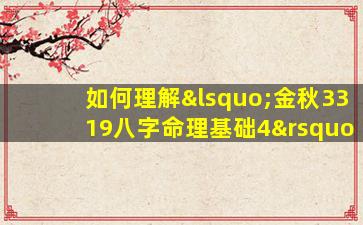关于您提到的“金秋3319八字命理基础4”,目前没有公开权威资料明确记载这一名称的命理体系,可能是特定机构、个人课程或非主流的命名方式。不过,基于八字命理学(四柱预测)的通用框架,我可以为您梳理八字命理基础的核心内容,并提供一些可能的理解方向:
