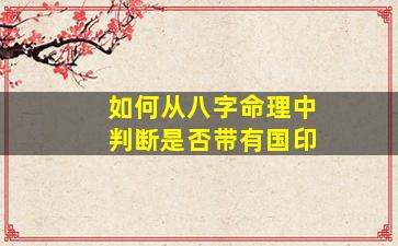 在八字命理中,“国印”是一种代表权力、地位、文书、印章的吉神,通常与官方职位、公职、法律事务或权威机构相关。判断八字是否带有国印,主要依据年、月、日、时四柱的地支组合,并结合神煞的查法。以下是具体方法: