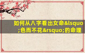 在八字命理中,所谓“色而不花”的女命,通常指女性虽具魅力或情缘机会,但能守住道德底线、不滥情、不随意越轨的特征。这种命理特征的判断需结合十神、五行、神煞及干支组合的综合分析,以下为具体解析方法: