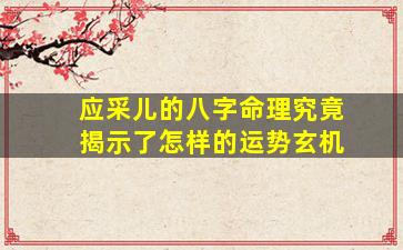 应采儿的八字命理分析需要基于她的出生时间(公开资料显示为1983年6月20日,但具体时辰不详),以下是根据已知信息进行的专业推演和命理逻辑分析: