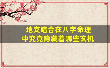 在八字命理中,“地支暗合”是一种较为隐秘却影响深远的相互作用,通常指地支藏干之间的暗中相合,而非表面上的六合、三合等明显组合。其玄机主要体现于以下几个方面:
