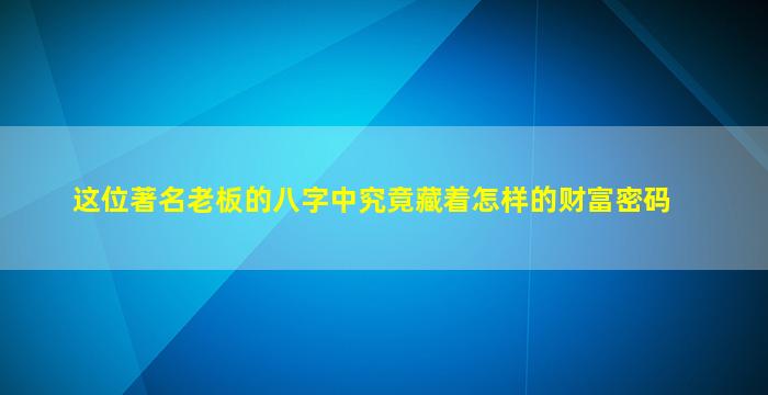 关于从八字命理角度分析“著名老板的财富密码”,需结合传统命理学的核心要素进行综合解读。以下为专业分析框架及常见财富格局特征:
