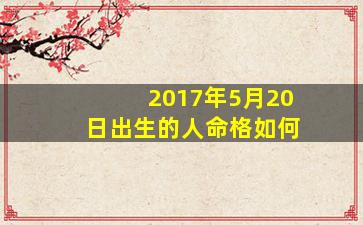 根据中国传统命理学(八字算命),一个人的命格由出生年、月、日、时的天干地支组合而成,共八个字,称为“八字”或“四柱”。由于提问中未提供具体出生时间(时辰),以下分析仅基于2017年5月20日的日期(默认按农历四月廿五,公历直接转换),忽略时辰的影响,结果仅供参考。