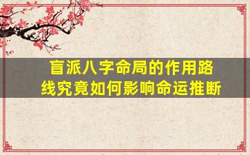 盲派八字命理作为中国传统命理学的重要分支,其核心在于通过独特的“作用路线”来解析命局中的五行生克、十神配置与干支互动,进而推断命运轨迹。以下是其作用路线的关键逻辑及对命运推断的影响: