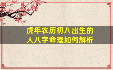 虎年农历初八出生者的八字命理分析需结合具体年份(因不同年份天干地支不同),以下以 2022年壬寅虎年 为例进行解析,并说明通用推算逻辑: