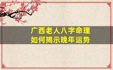 在传统八字命理中,分析晚年运势主要关注日主强弱、时柱(代表晚年)、用神喜忌以及大运走势等。以下从广西地域特点与命理结合的角度,为您梳理分析框架: