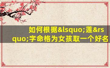 根据“莲”字为女孩取名时,需结合其字形、字义、五行属性及命理需求,兼顾音韵美与寓意深度。以下为系统的命名思路与建议: