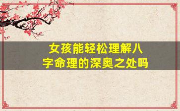 关于女孩是否能轻松理解八字命理的深奥之处,需要从多个角度进行分析,既涉及性别与学习能力的关系,也涉及八字命理本身的特质。以下是一个综合的解答: