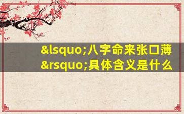 “八字命来张口薄”是一句民间俗语,其含义需结合传统文化中“八字命理”的背景来理解。以下是具体解析: