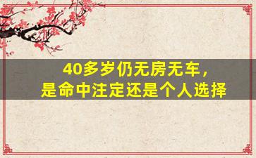 关于“40多岁仍无房无车”是命中注定还是个人选择的问题,答案往往介于两者之间,涉及社会、经济、个人价值观等多重因素的综合作用。以下是一些关键角度的分析: