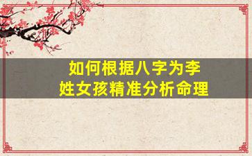 根据八字为李姓女孩精准分析命理,需结合传统命理学体系,按以下步骤系统展开: