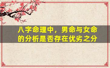 在八字命理学中,男命与女命的分析并无绝对的优劣之分,但存在性别差异带来的侧重点和解读方式的区别。这种差异主要源于传统文化对阴阳、社会角色的认知,而非命理本身的优劣。以下是关键要点: