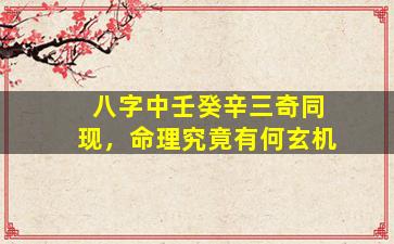 壬癸辛三奇同现,预示命主有超凡潜质,但需“天时地利人和”配合方能大成。建议结合具体八字详析,重点观察五行流通与格局清浊,方能揭开其真正玄机。