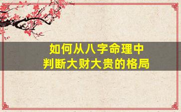 在八字命理中,判断一个人是否具备“大财大贵”的格局,需综合分析命局中的五行生克、十神组合、特殊格局以及大运流年的配合。以下是关键判断要点: