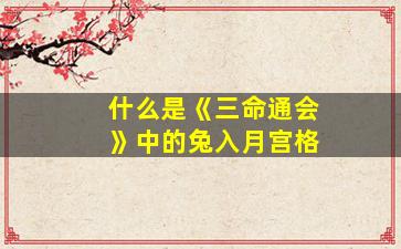 《三命通会》是明代命理学的重要典籍,其中“兔入月宫格”是一种特殊的命理格局,主要与八字中的“卯”(兔)和“未”(月宫)相关。以下是该格局的要点解析:
