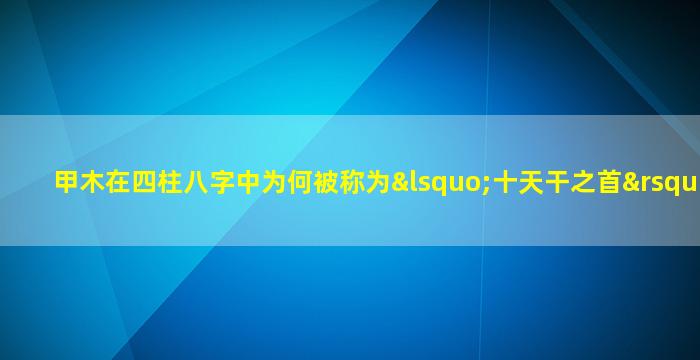 在四柱八字命理学中,甲木被称为“十天干之首”,这一称谓主要源于以下几个方面的文化、哲学和命理逻辑: