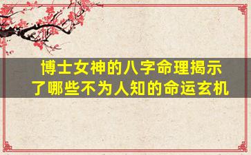 关于“博士女神的八字命理分析”,需要明确的是:八字命理(四柱预测)是中国传统命理学的一种推演方法,其结论缺乏科学依据,更多是文化层面的探讨。以下是从传统文化角度进行的象征性解读,仅供娱乐参考: