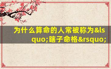 “瞎子命格”这一说法并非普遍称谓,而是源于中国传统文化和民间习俗中对算命行业的特定认知。以下从几个方面解释这一现象的由来和背后的文化逻辑: