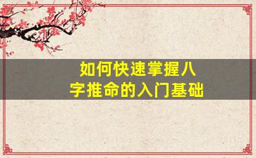 要快速掌握八字推命(四柱预测)的入门基础,可以按照以下步骤系统学习: