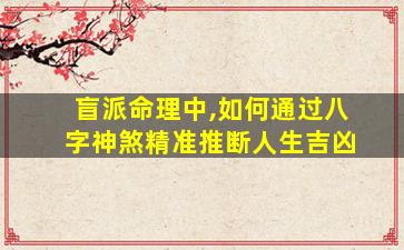 盲派命理作为传统命理学的重要分支,以“实战、直观、重象法”为特点,尤其擅长通过神煞与干支组合的象义来推断人生吉凶。以下是盲派运用神煞的核心方法及要点: