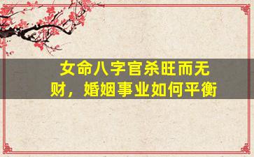 在八字命理中,女命官杀旺而无财的格局确实对婚姻和事业有着特殊影响,需结合十神、五行生克及大运流年综合分析。以下是关键解读与建议: