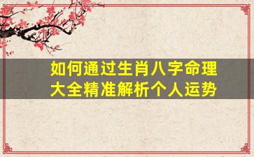 通过中国传统命理学中的生肖与八字(四柱)解析个人运势,需要结合生辰八字的五行生克、十神关系、大运流年等要素进行系统分析。以下是精准解析的步骤和方法: