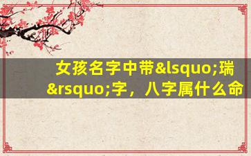 在传统八字命理中,名字中的用字(如“瑞”)并不能直接决定一个人的命格属性(如五行、十神等)。八字命理的核心是通过出生时间(年、月、日、时)推算出的四柱干支,结合五行生克、十神关系等来分析命运。名字更多是后天辅助调整的手段,而非先天命格的依据。以下是具体分析: